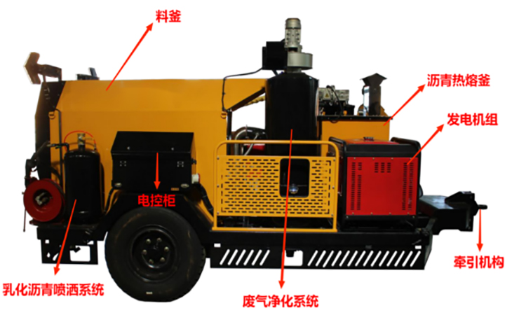 1、具有廢舊瀝青混合料加熱拌和(或舊料再生)、冷料加熱、瀝青攪拌、瀝青噴灑、路面灌縫等多種功能,能高效快速修補受損路面。